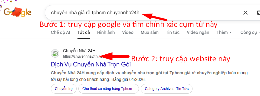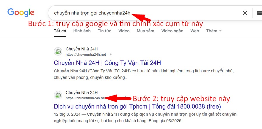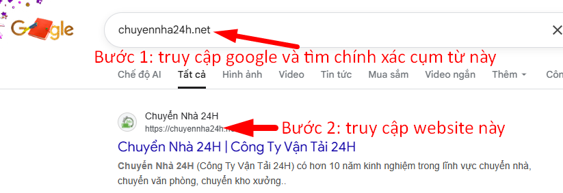 Bước 2: Truy cập website chuyennha24h…. như hình bên dưới: